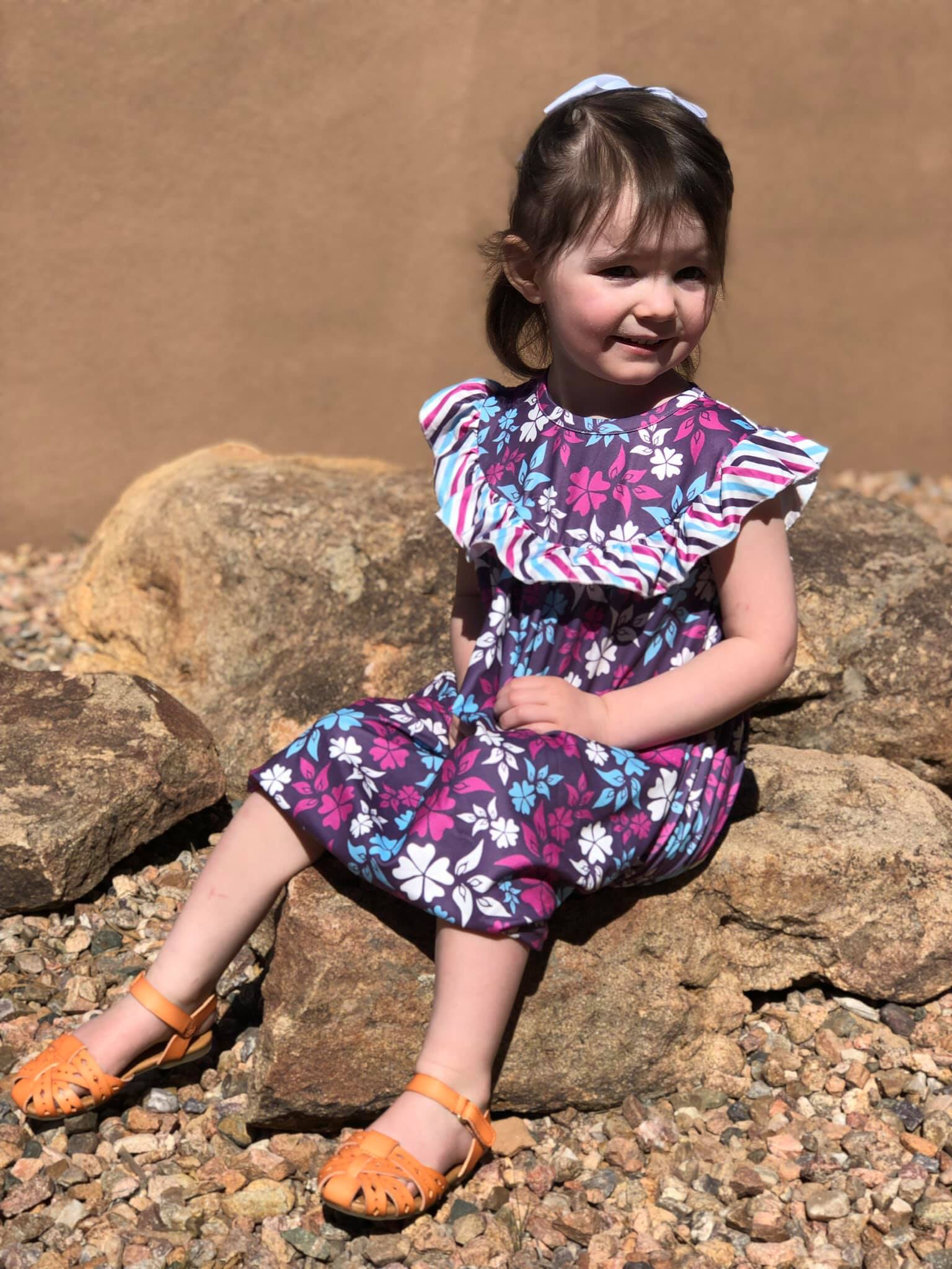 Stay cool in this purple floral dress featuring cap sleeves and ruffles.